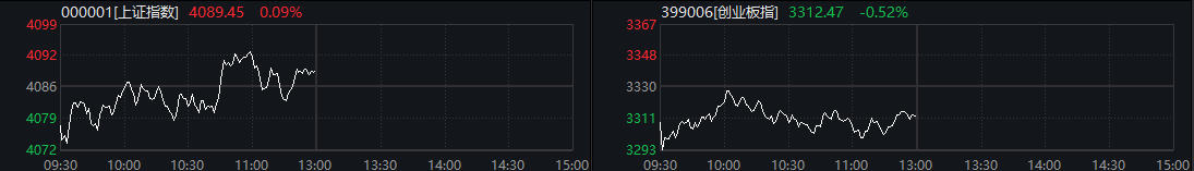 中新经纬1月8日电 8日,A股三大股指震荡调整。截至午盘,上证指数涨0.09%报4089.45点,深证成指跌0.20%报14003.09点,创业板指跌0.52%报3312.47点。